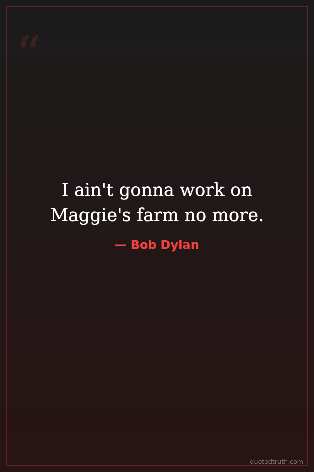 I ain't gonna work on Maggie's farm no more.