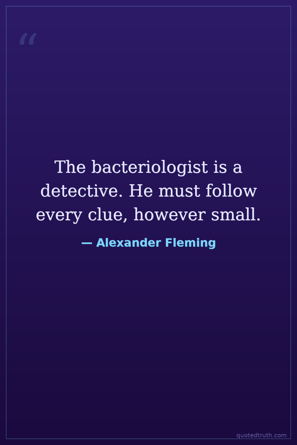 The bacteriologist is a detective. He must follow every clue, however small.