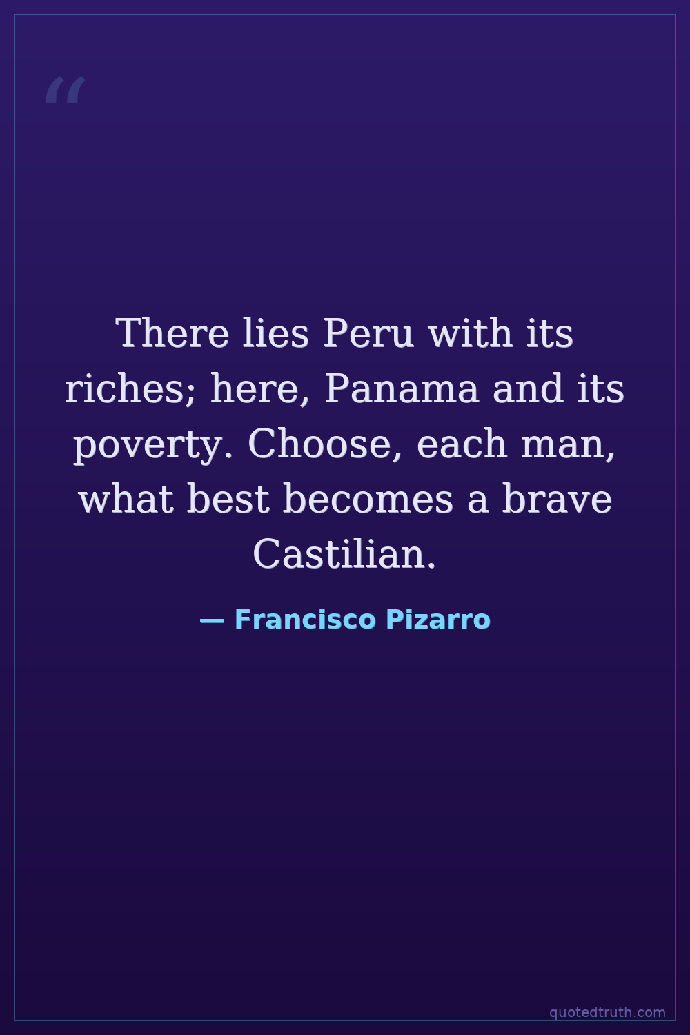 There lies Peru with its riches; here, Panama and its poverty. Choose, each man, what best becomes a brave Castilian.