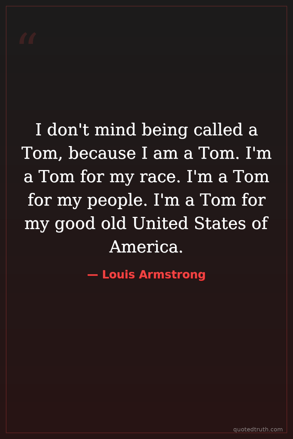I don't mind being called a Tom, because I am a Tom. I'm a Tom for my race. I'm a Tom for my people. I'm a Tom for my good old United States of America.