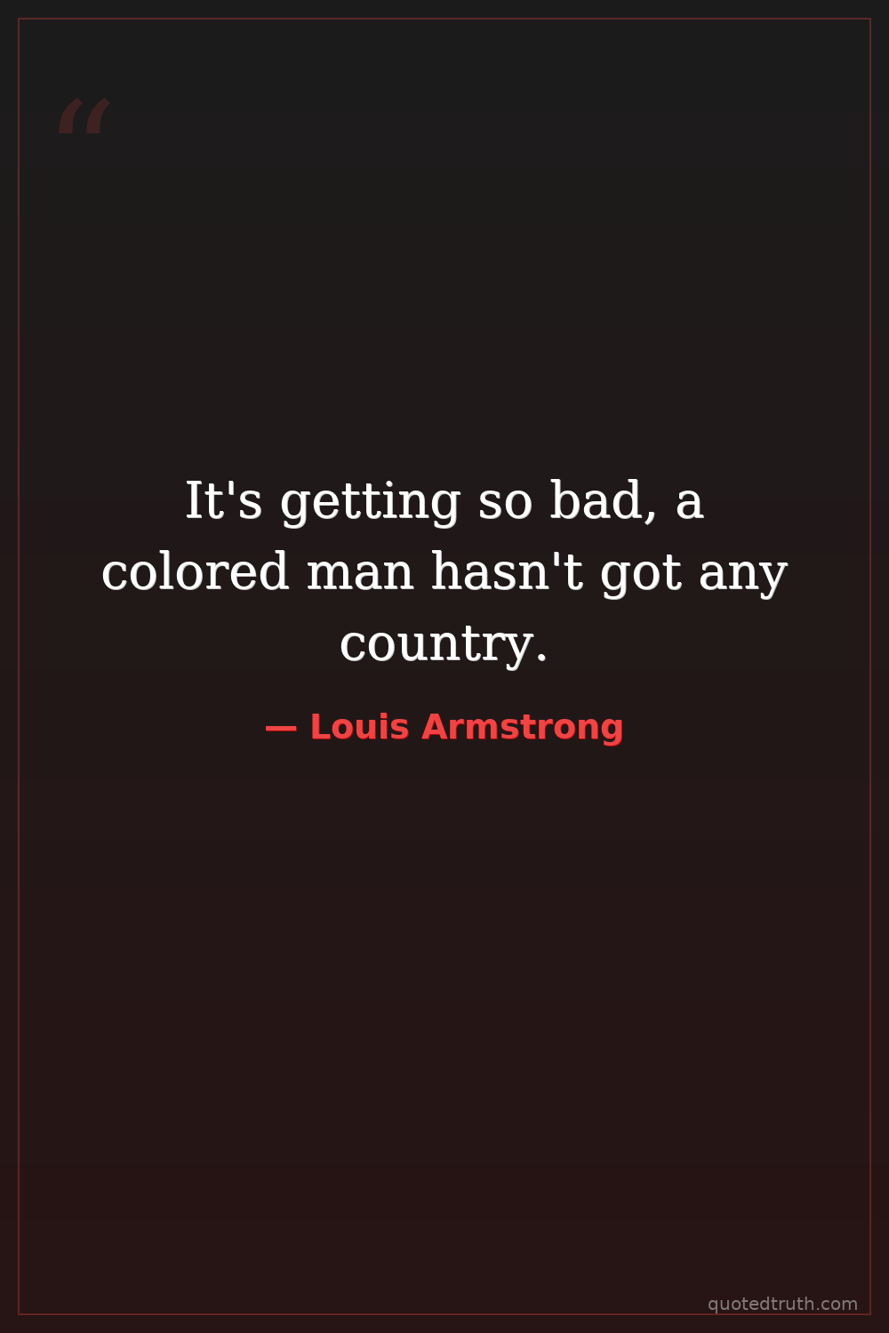 It's getting so bad, a colored man hasn't got any country.