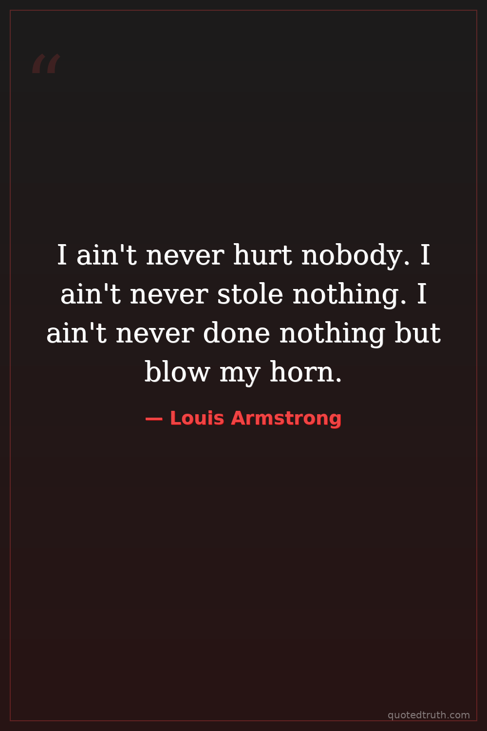 I ain't never hurt nobody. I ain't never stole nothing. I ain't never done nothing but blow my horn.