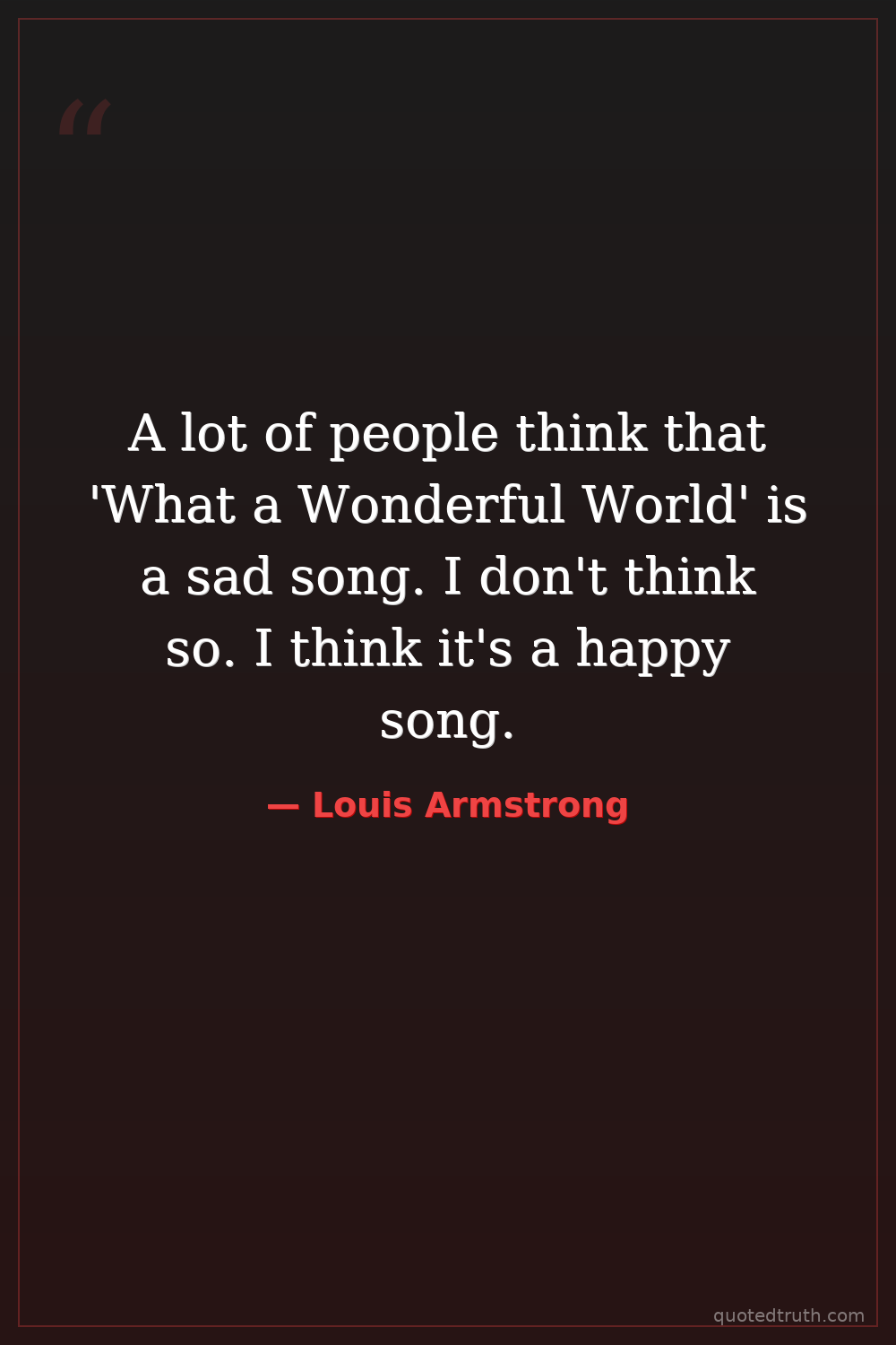 A lot of people think that 'What a Wonderful World' is a sad song. I don't think so. I think it's a happy song.
