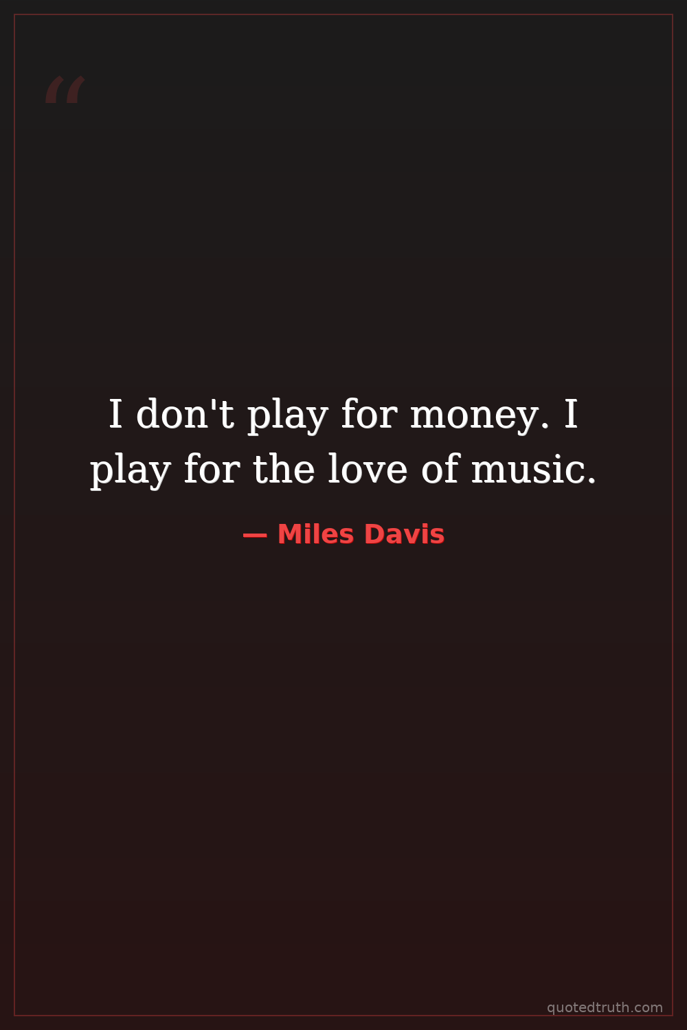 I don't play for money. I play for the love of music.