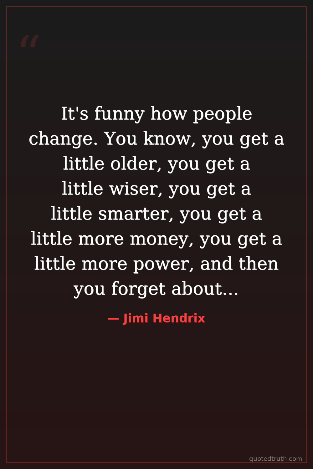 It's funny how people change. You know, you get a little older, you get a little wiser, you get a little smarter, you get a little more money, you get a little more power, and then you forget about the people that helped you get there.