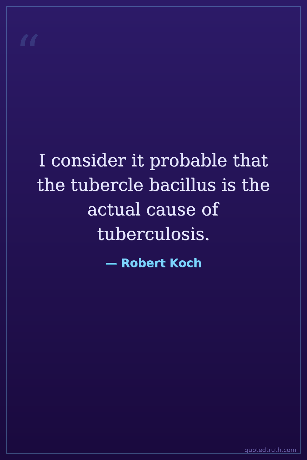 I consider it probable that the tubercle bacillus is the actual cause of tuberculosis.