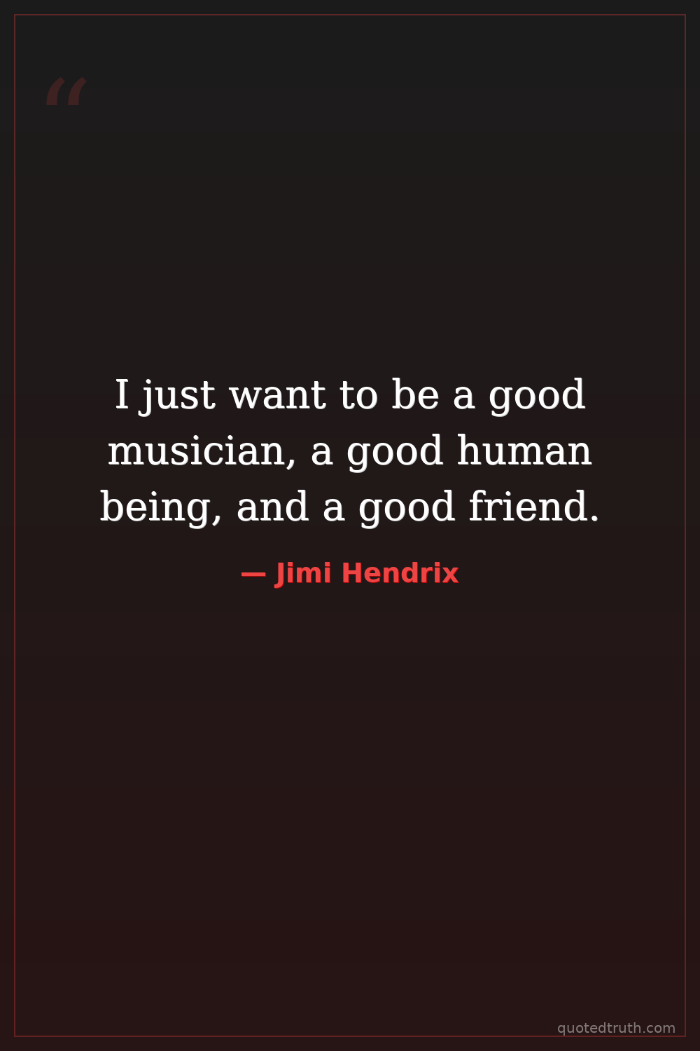 I just want to be a good musician, a good human being, and a good friend.