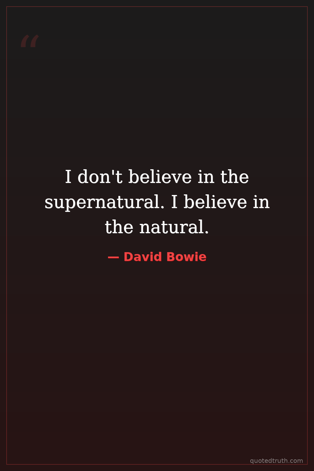 I don't believe in the supernatural. I believe in the natural.