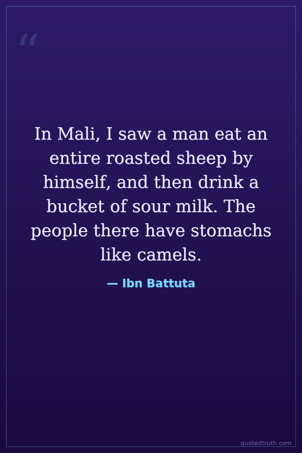 In Mali, I saw a man eat an entire roasted sheep by himself, and then drink a bucket of sour milk. The people there have stomachs like camels.