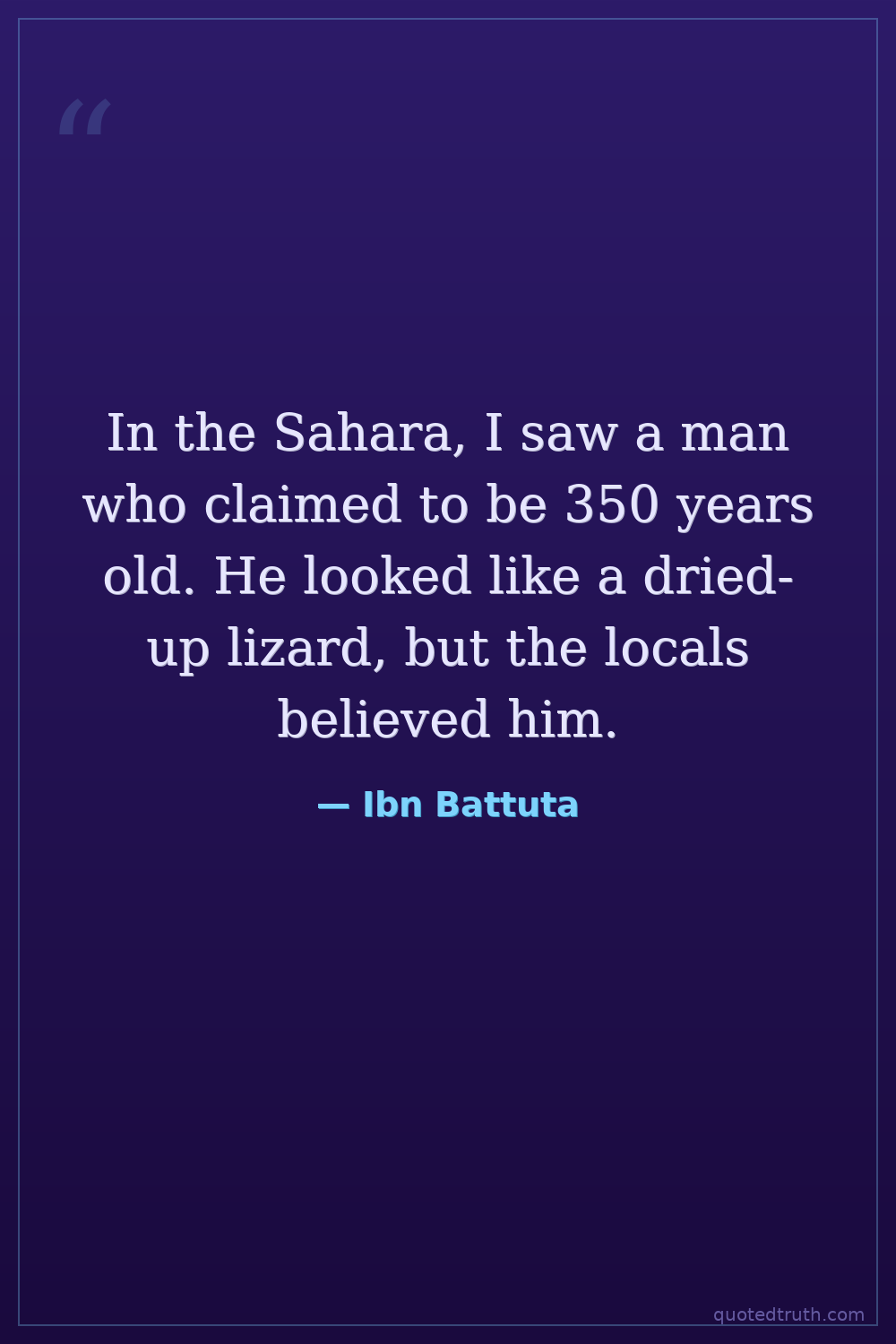 In the Sahara, I saw a man who claimed to be 350 years old. He looked like a dried-up lizard, but the locals believed him.