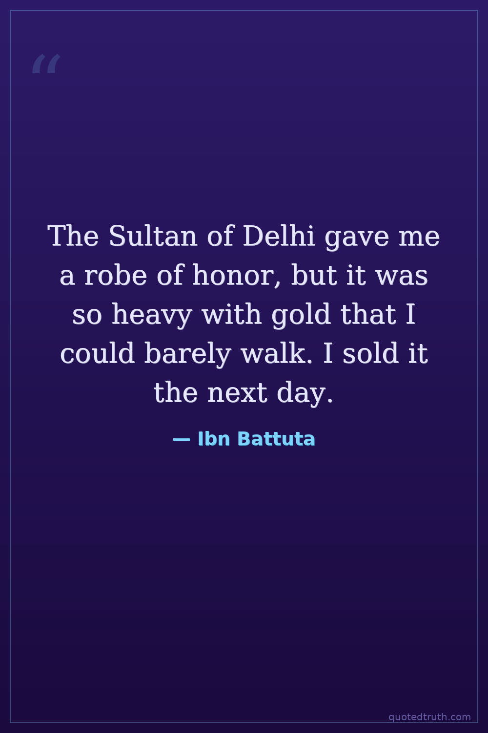 The Sultan of Delhi gave me a robe of honor, but it was so heavy with gold that I could barely walk. I sold it the next day.
