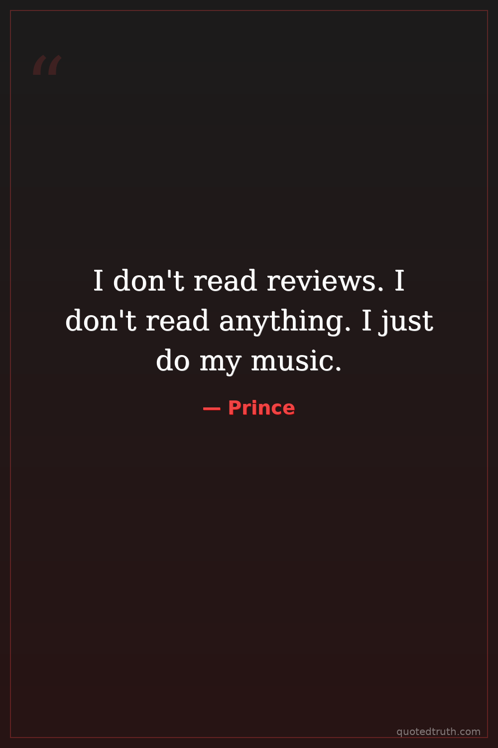 I don't read reviews. I don't read anything. I just do my music.