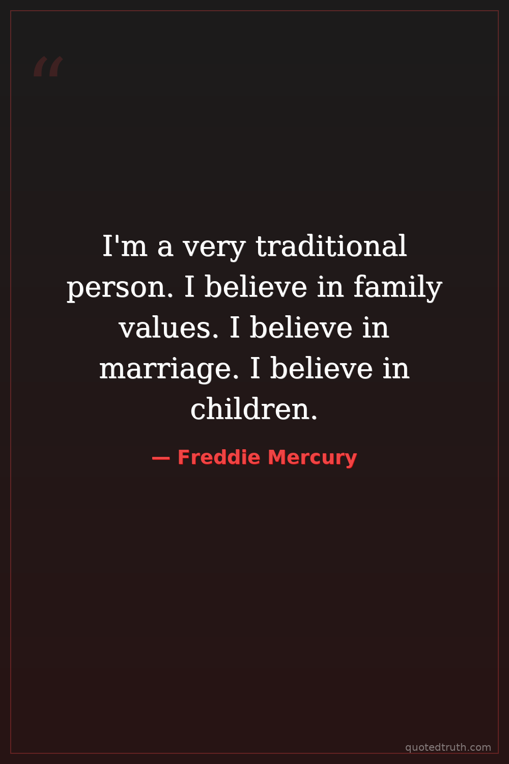 I'm a very traditional person. I believe in family values. I believe in marriage. I believe in children.