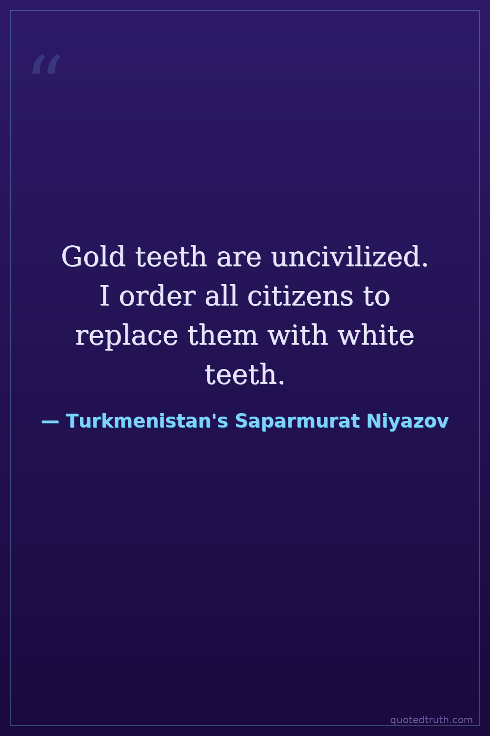 Gold teeth are uncivilized. I order all citizens to replace them with white teeth.