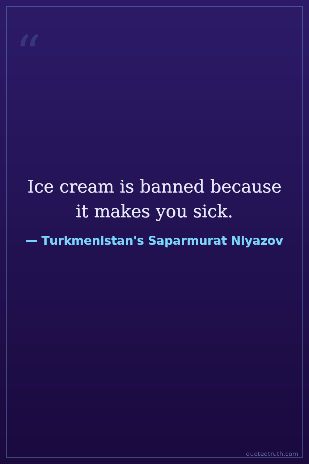 Controversial"I have decided that all the mountains in the country should be named after me. It is for my glory."