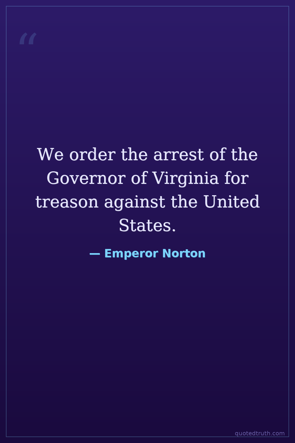 We order the arrest of the Governor of Virginia for treason against the United States.