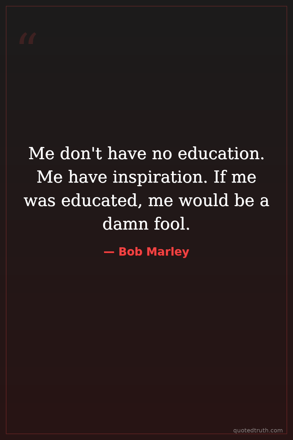 Me don't have no education. Me have inspiration. If me was educated, me would be a damn fool.