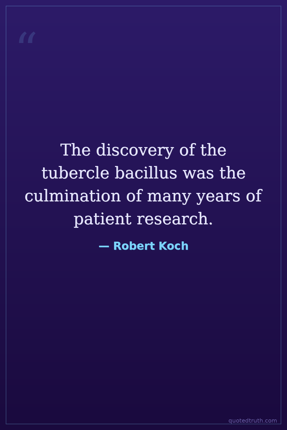 The discovery of the tubercle bacillus was the culmination of many years of patient research.
