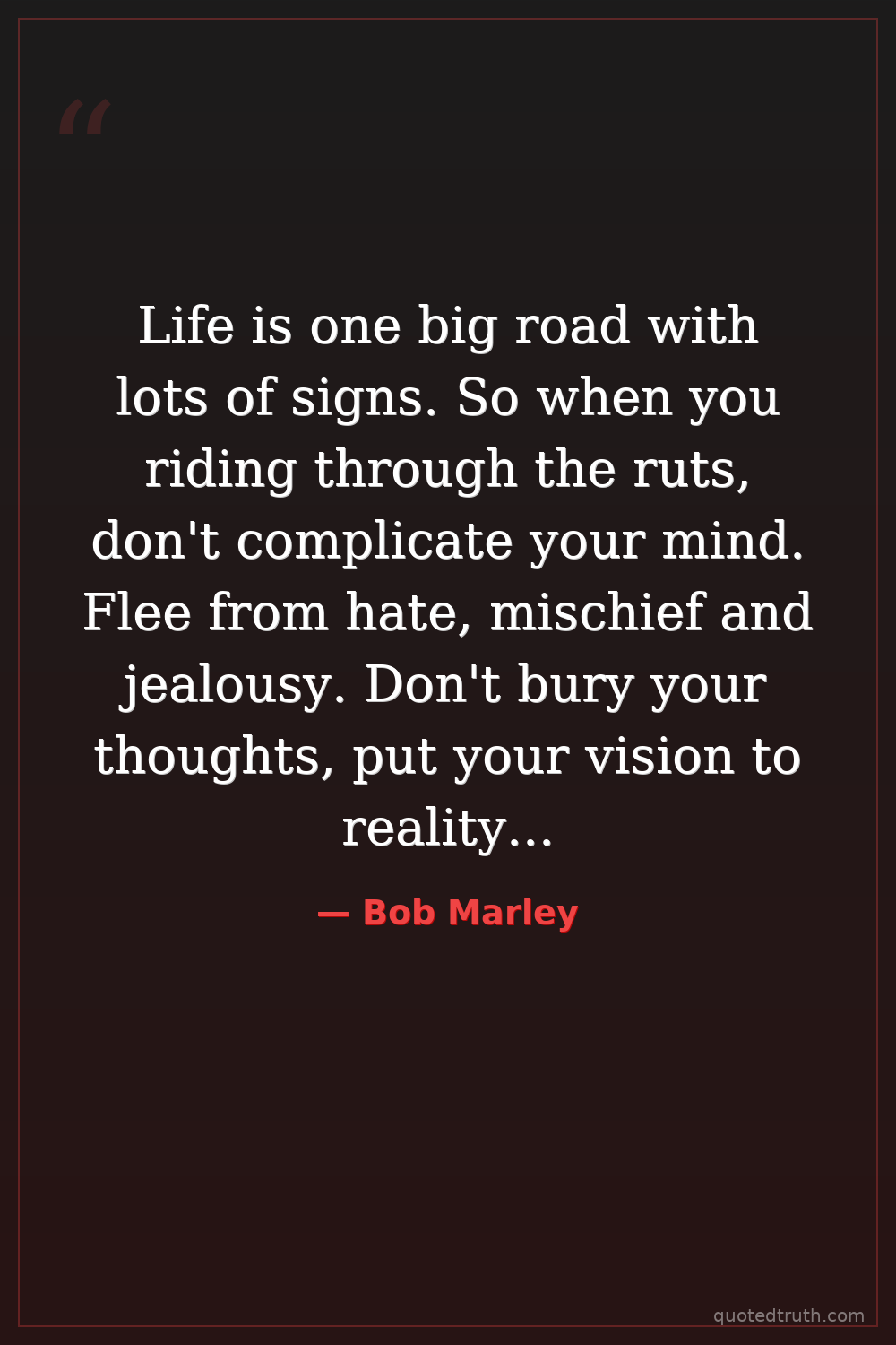 Life is one big road with lots of signs. So when you riding through the ruts, don't complicate your mind. Flee from hate, mischief and jealousy. Don't bury your thoughts, put your vision to reality. Wake Up and Live!
