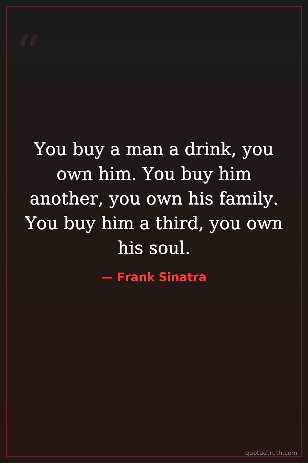 You buy a man a drink, you own him. You buy him another, you own his family. You buy him a third, you own his soul.