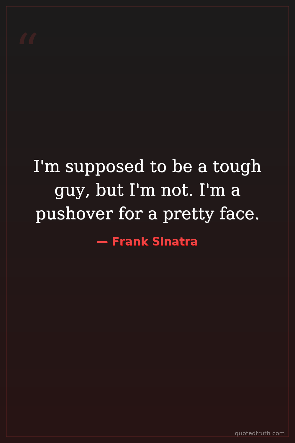 I'm supposed to be a tough guy, but I'm not. I'm a pushover for a pretty face.
