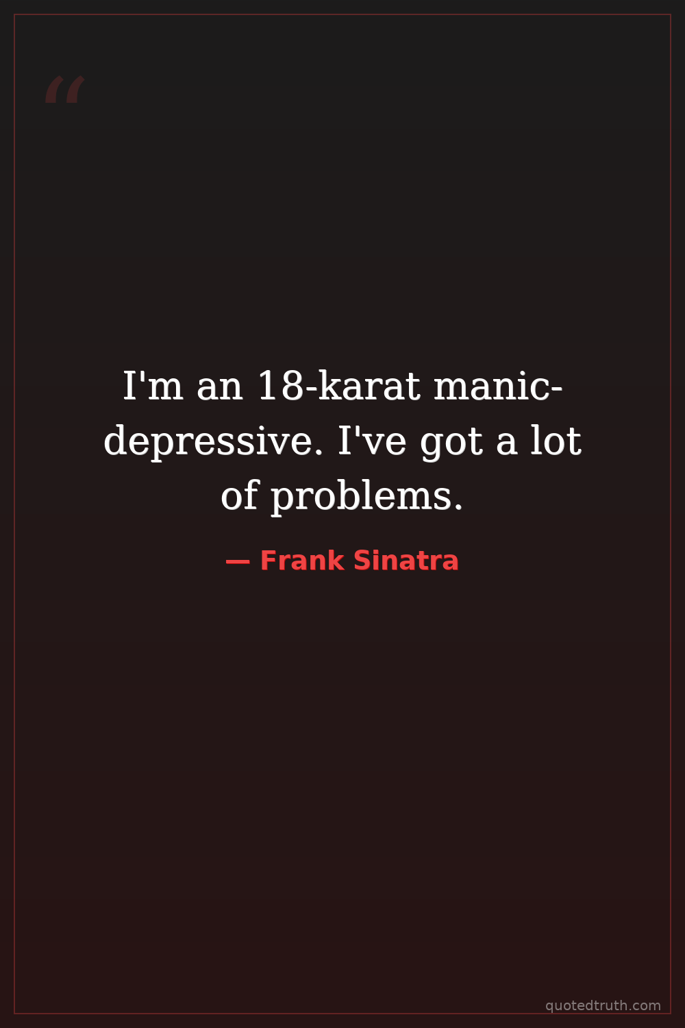 I'm an 18-karat manic-depressive. I've got a lot of problems.