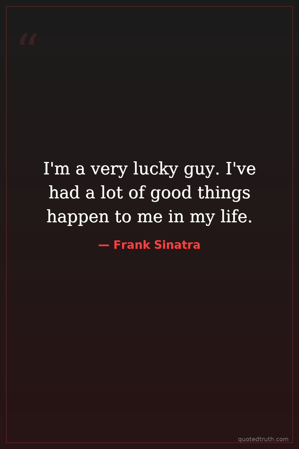 I'm a very lucky guy. I've had a lot of good things happen to me in my life.