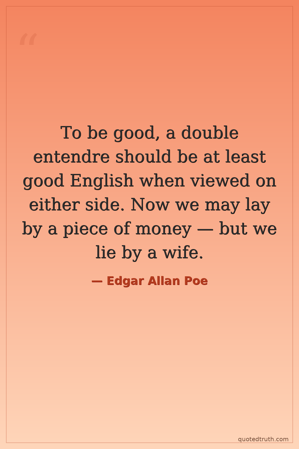 Edgar Allan Poe — "To be good, a double entendre should be at least good English when viewed on eit…"