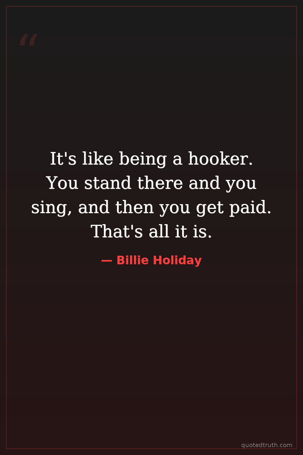 It's like being a hooker. You stand there and you sing, and then you get paid. That's all it is.
