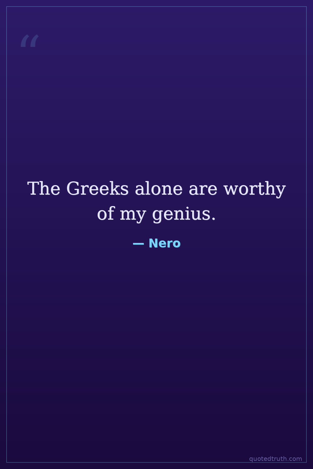 The Greeks alone are worthy of my genius.
