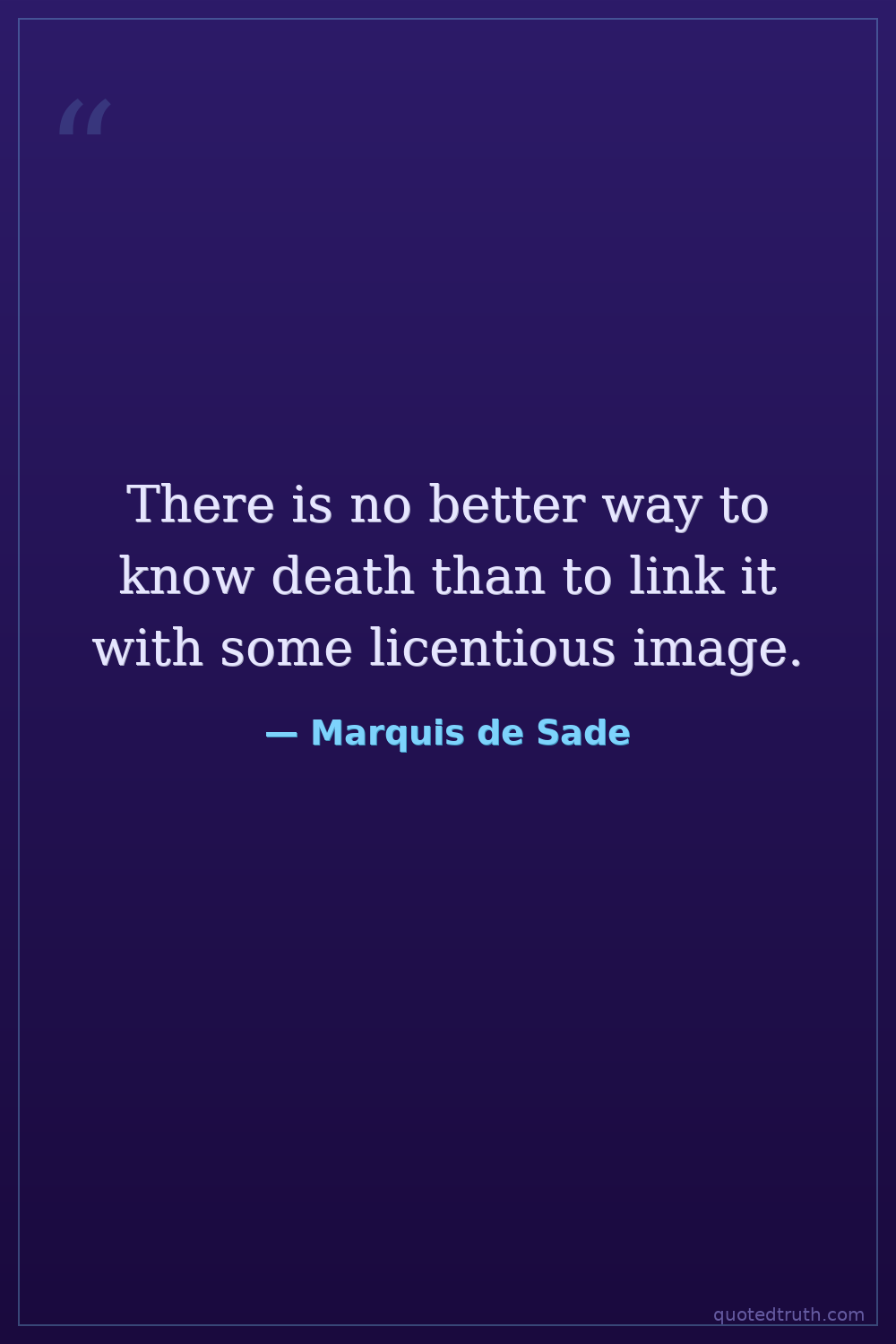 There is no better way to know death than to link it with some licentious image.