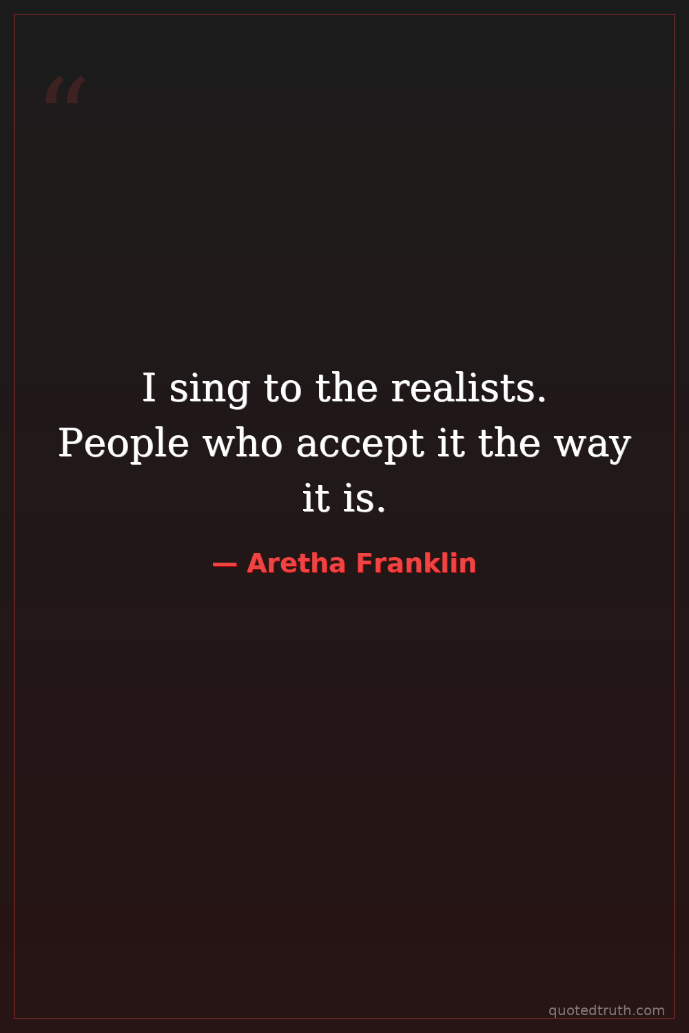 I sing to the realists. People who accept it the way it is.