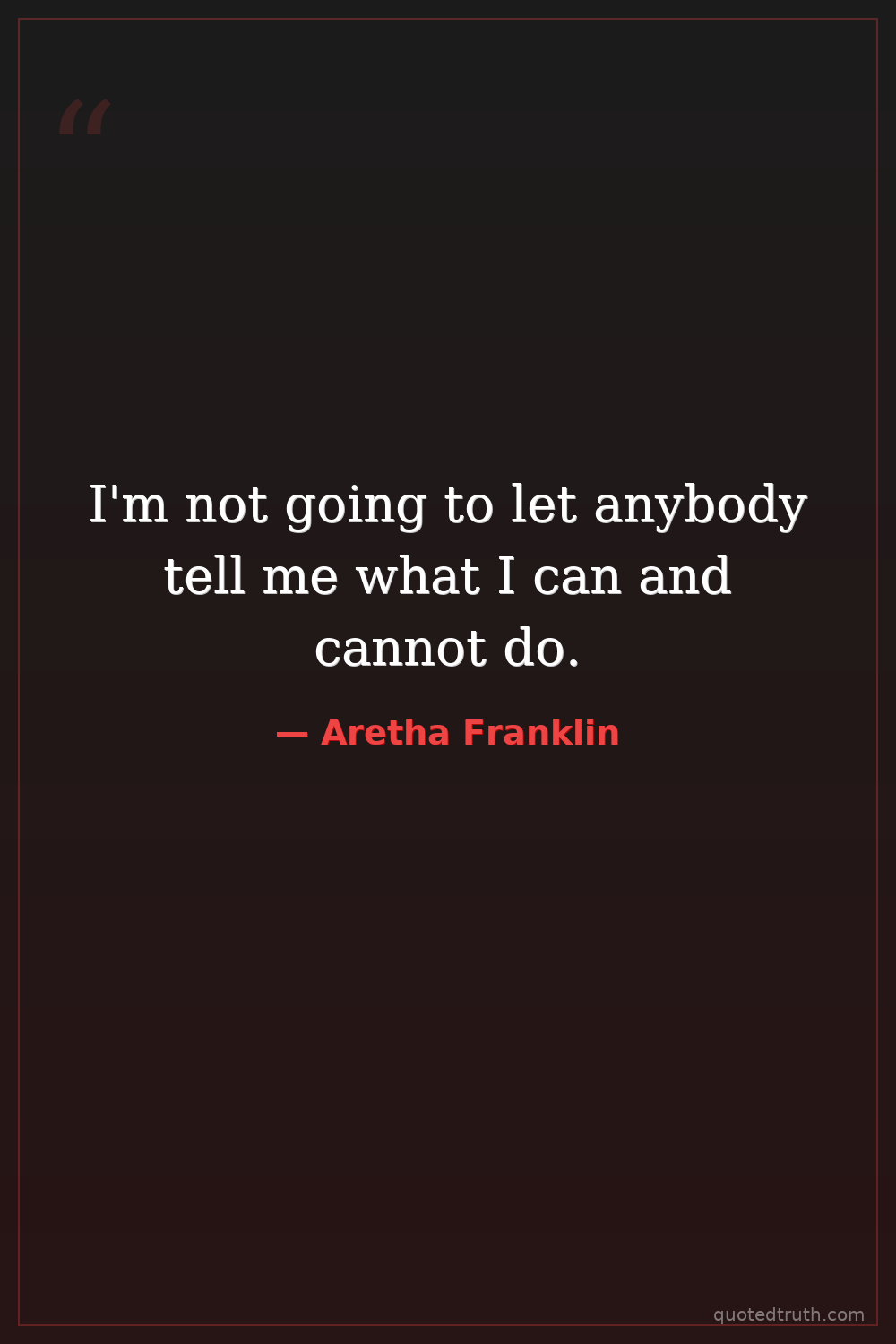 I'm not going to let anybody tell me what I can and cannot do.