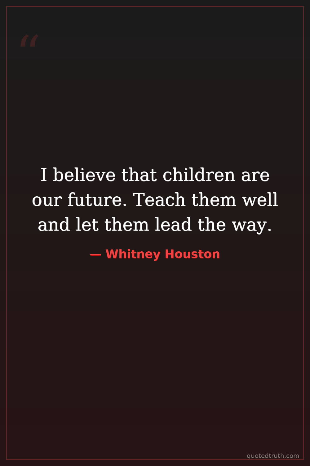 I believe that children are our future. Teach them well and let them lead the way.
