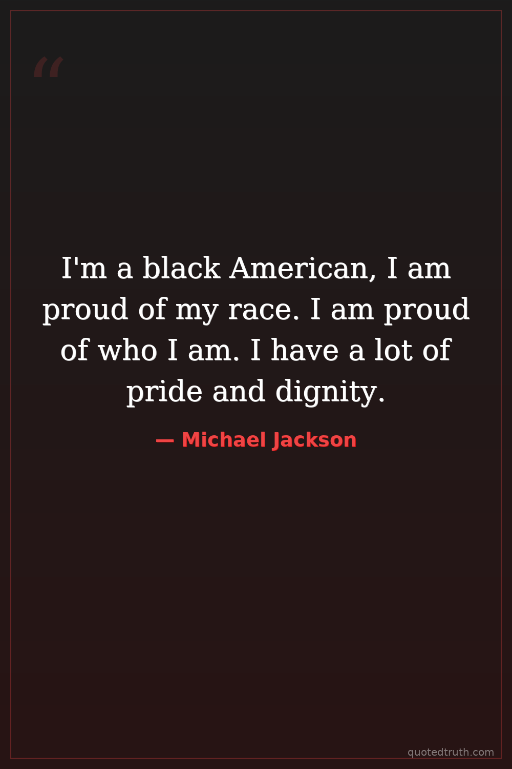I'm a black American, I am proud of my race. I am proud of who I am. I have a lot of pride and dignity.