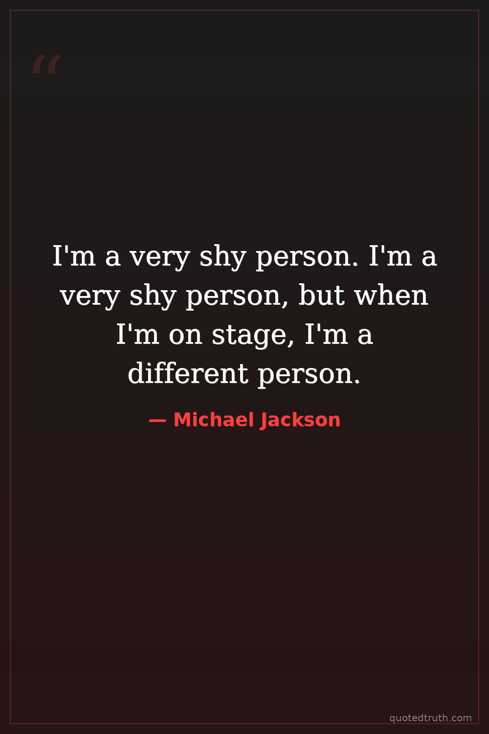 I'm a very shy person. I'm a very shy person, but when I'm on stage, I'm a different person.