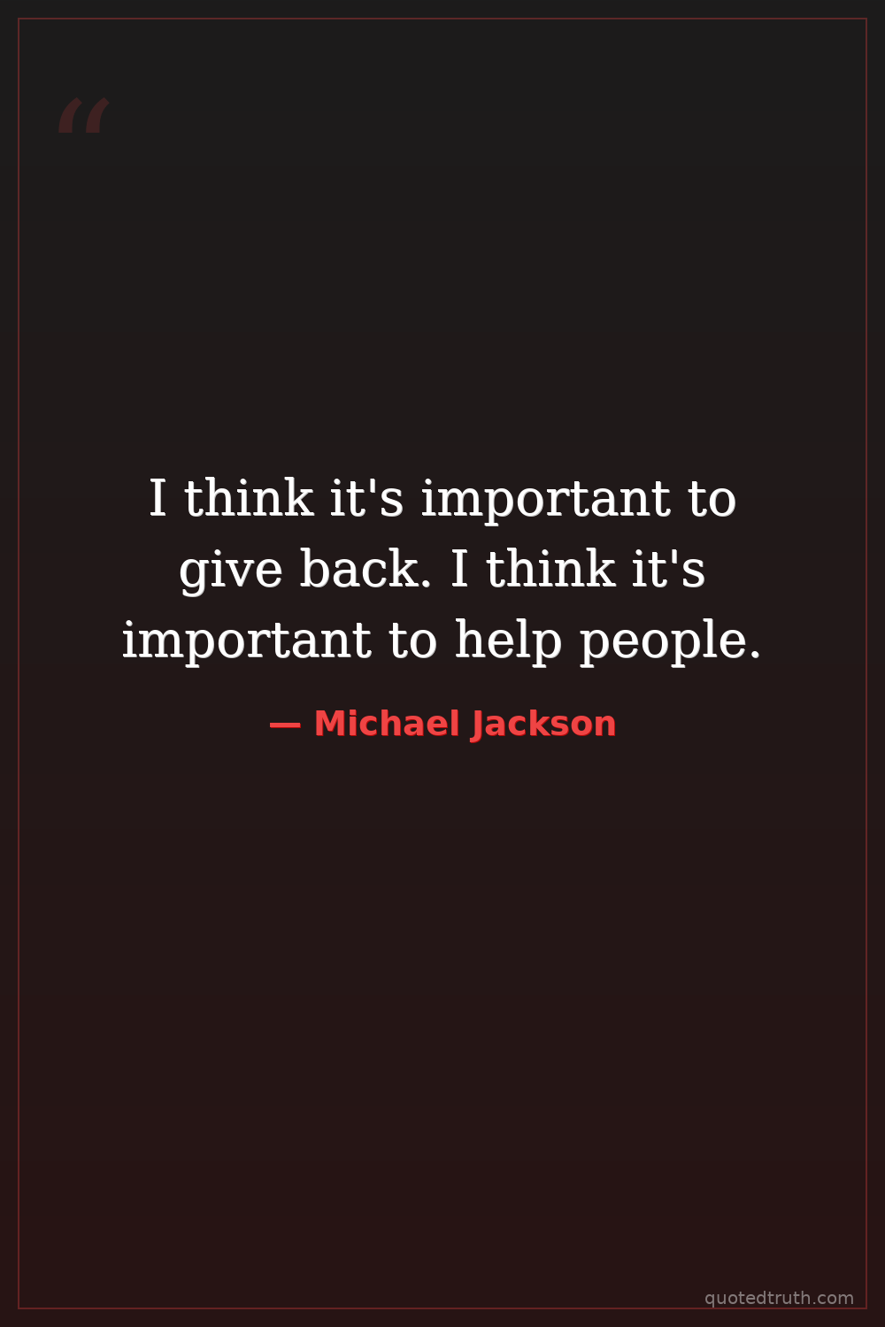 I think it's important to give back. I think it's important to help people.