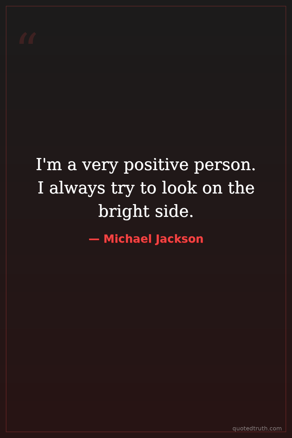 I'm a very positive person. I always try to look on the bright side.