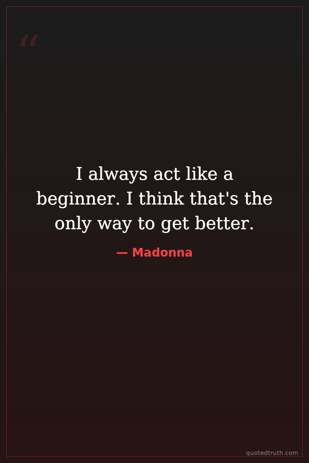I always act like a beginner. I think that's the only way to get better.