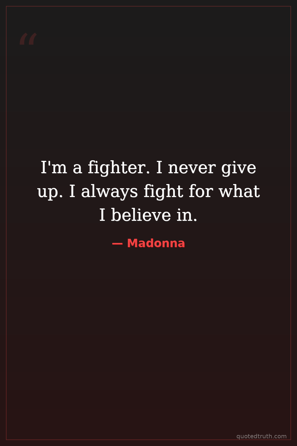 I'm a fighter. I never give up. I always fight for what I believe in.