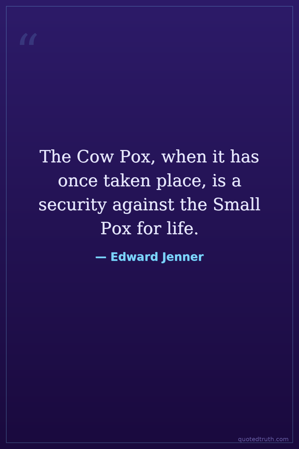 The Cow Pox, when it has once taken place, is a security against the Small Pox for life.
