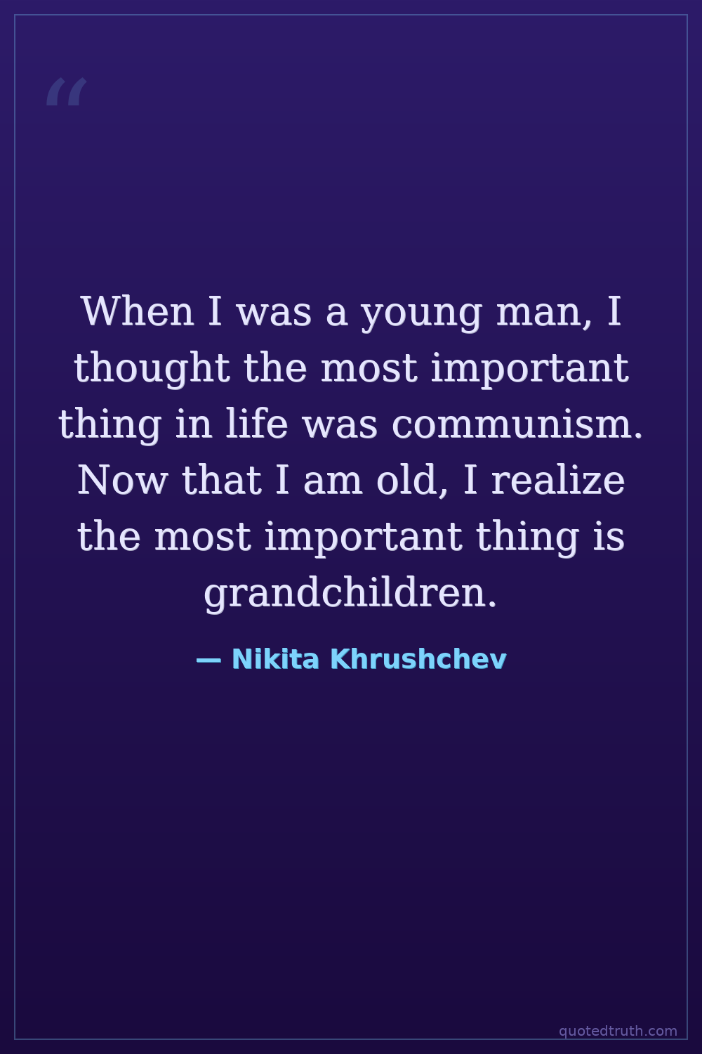 When I was a young man, I thought the most important thing in life was communism. Now that I am old, I realize the most important thing is grandchildren.