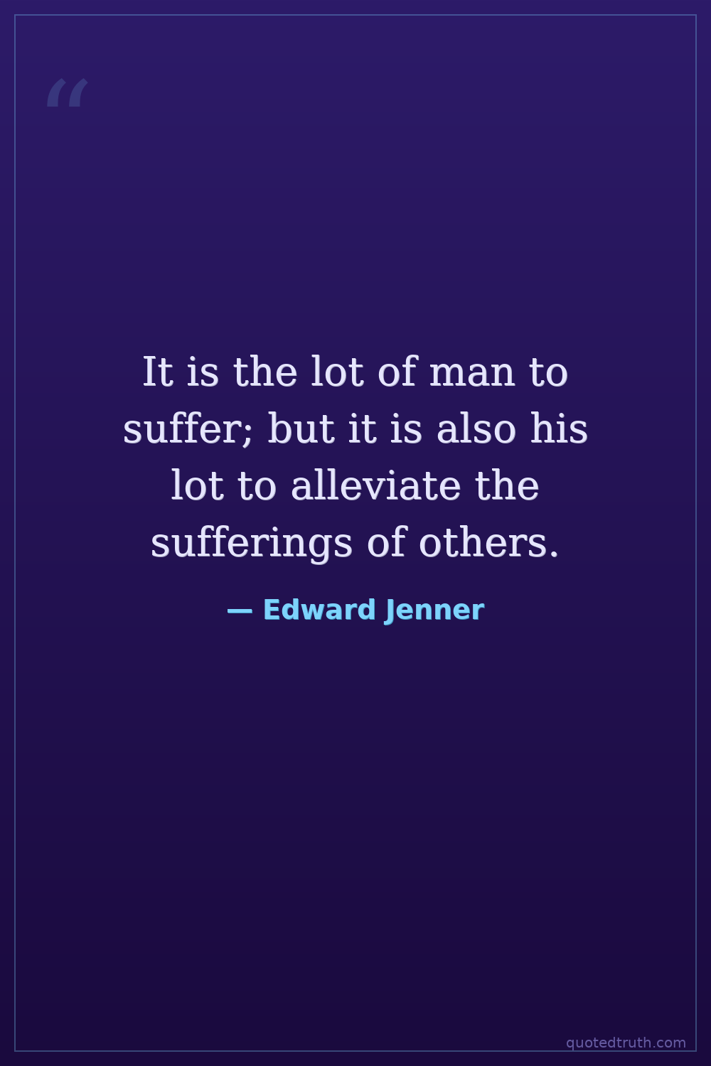 It is the lot of man to suffer; but it is also his lot to alleviate the sufferings of others.