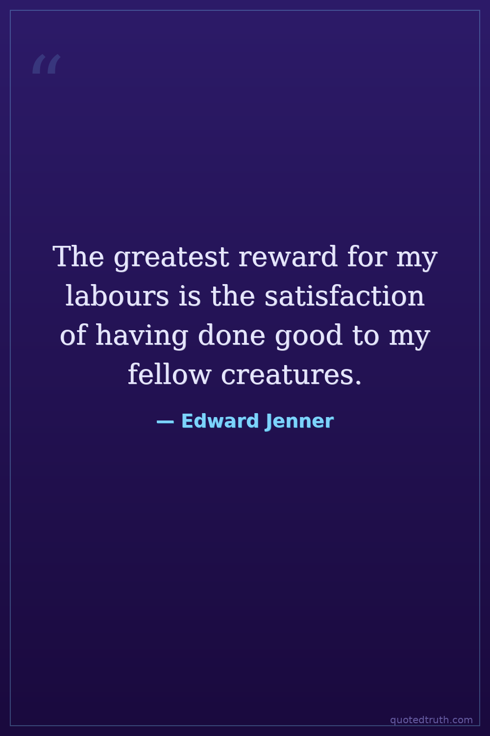 The greatest reward for my labours is the satisfaction of having done good to my fellow creatures.
