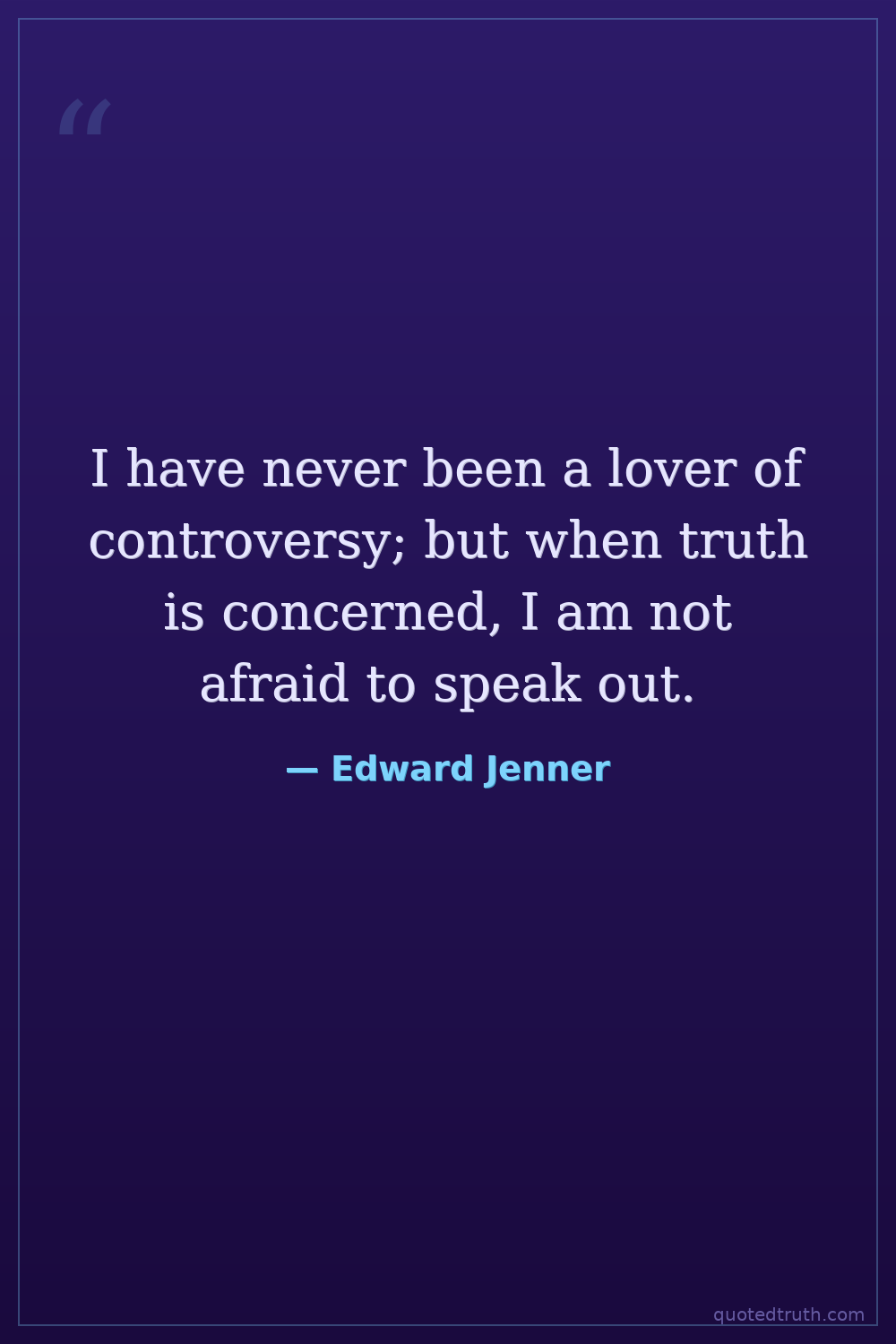 I have never been a lover of controversy; but when truth is concerned, I am not afraid to speak out.