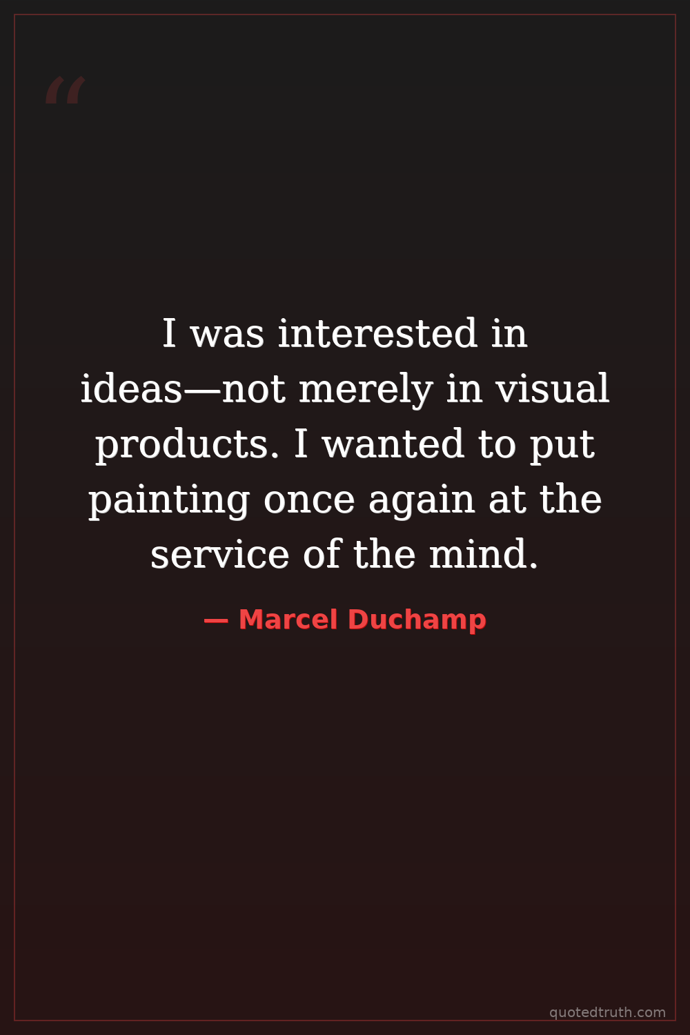 I was interested in ideas—not merely in visual products. I wanted to put painting once again at the service of the mind.