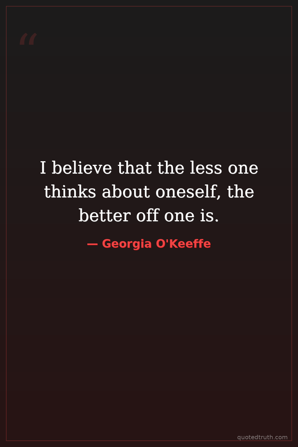 I believe that the less one thinks about oneself, the better off one is.