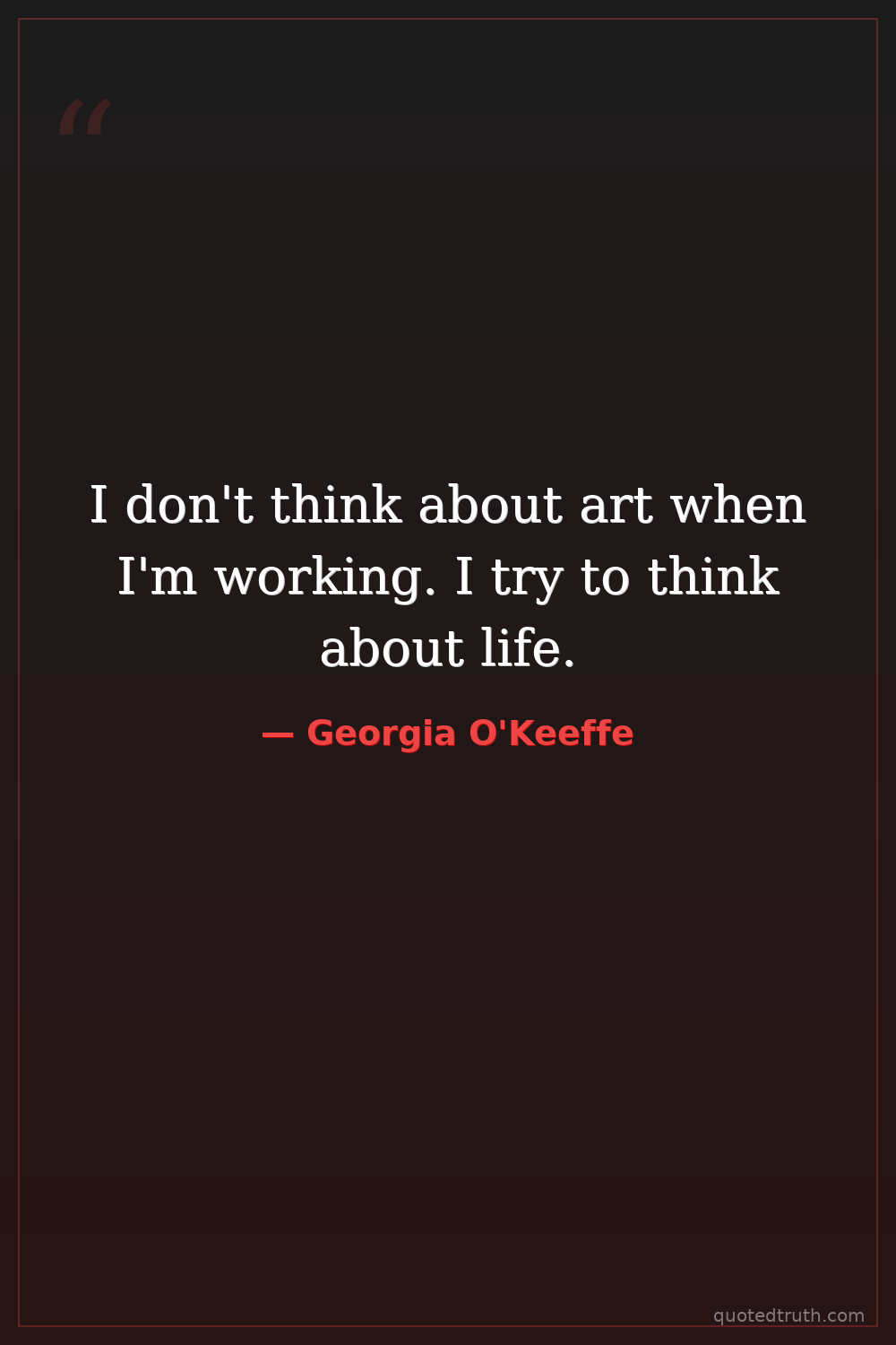 I don't think about art when I'm working. I try to think about life.