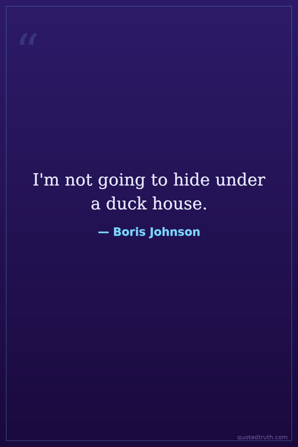 I'm not going to hide under a duck house.