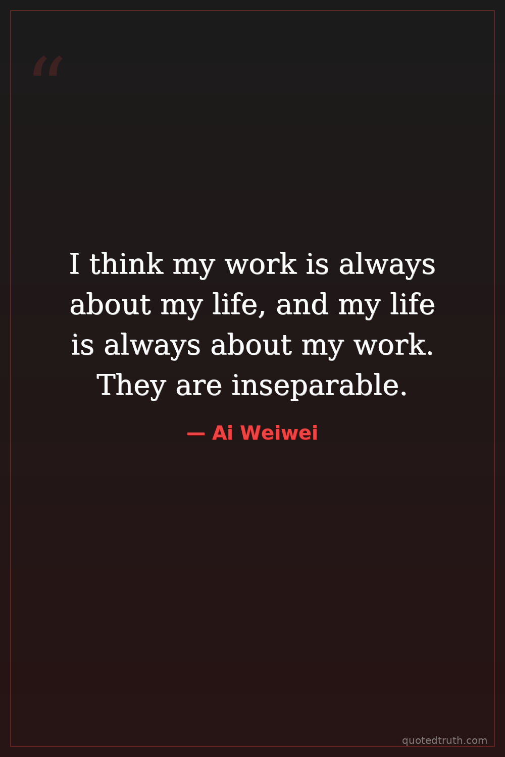 I think my work is always about my life, and my life is always about my work. They are inseparable.
